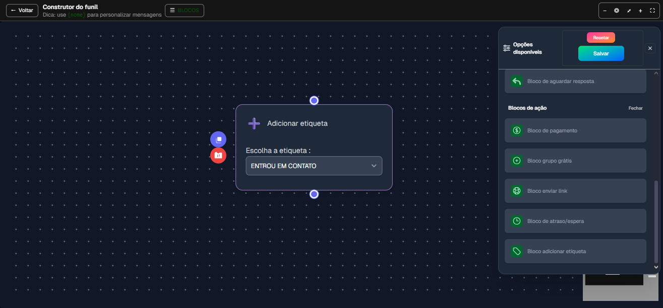 No Construtor de Fluxo, você encontrará o Bloco de Etiquetas, é ali que a mágica acontece.