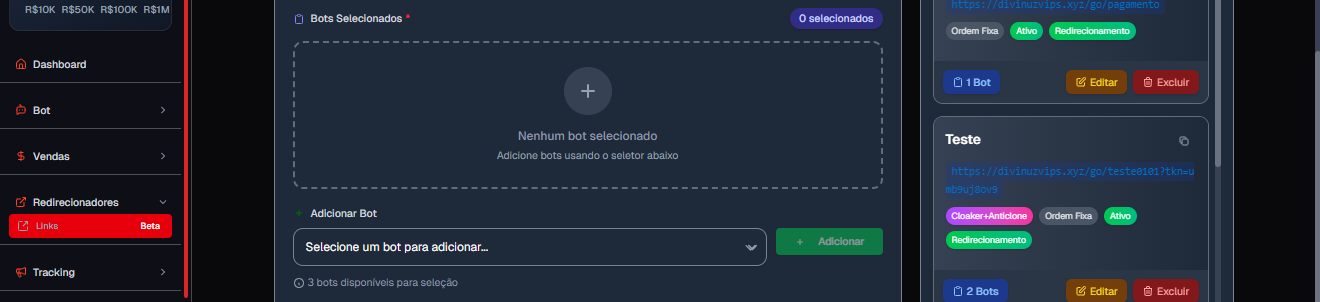 O Cloaker funciona filtrando tráfego suspeito, garantindo que apenas visitantes legítimos cheguem ao seu funil, enquanto o Anticlone protege seu bot contra duplicações e tentativas de replicação do seu sistema.
