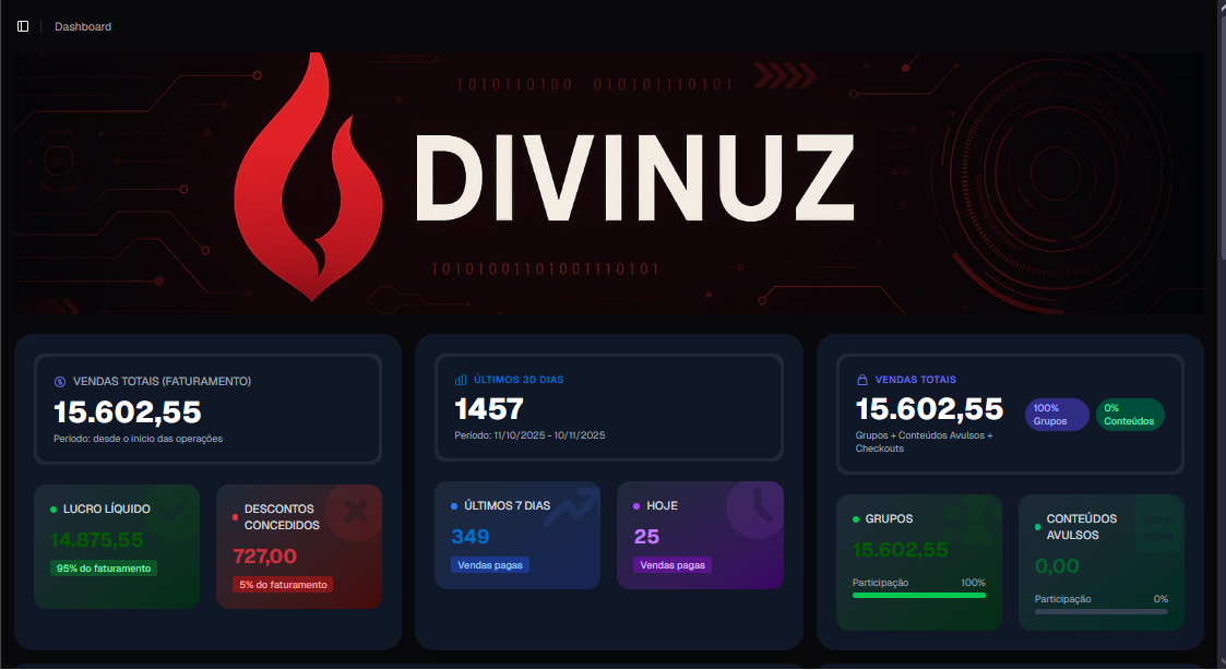 📊 Dashboard da Divinuz — O centro de controle do seu negócio